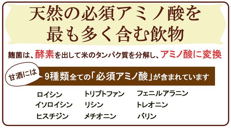 米麹(こうじ)のを分解酵素の力をかりて8時間じっくりと糖化させ、その後、急激に冷やして甘みを引き出しました。