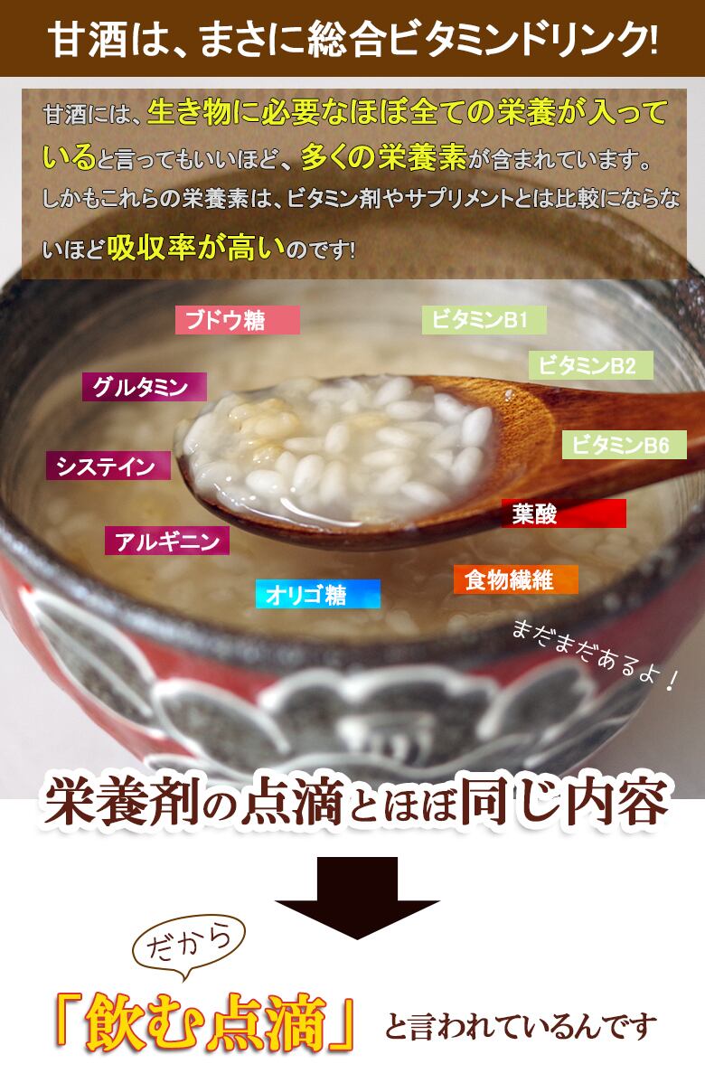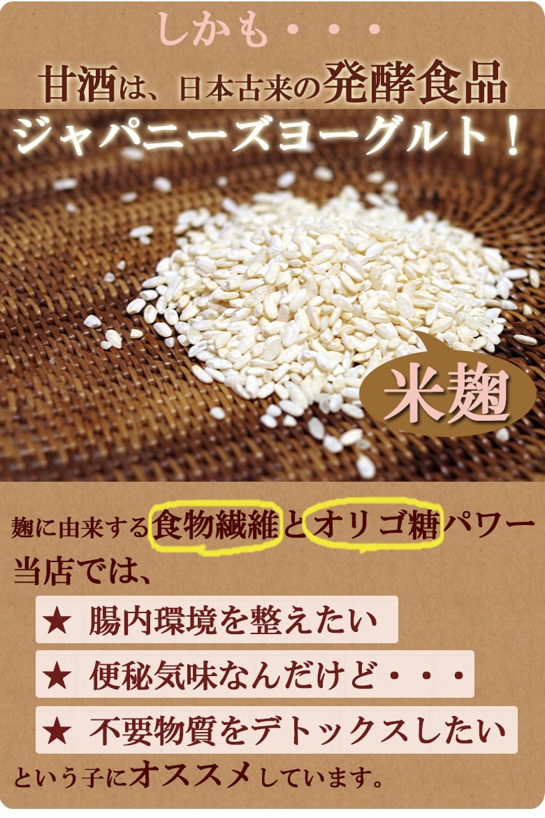 当店の「生甘酒」は濾過や加熱処理を一切しておりません。完全無添加自然飲料です。