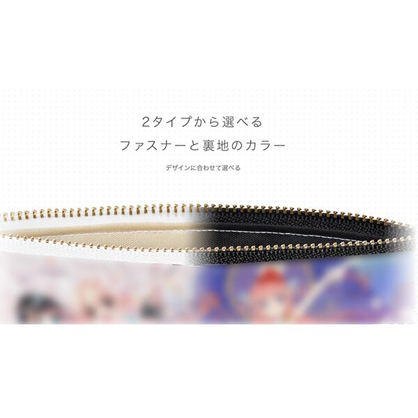 ファスナーと裏地のカラーも2タイプを用意しておりますので、ポーチのデザインに合わせてお選びください。